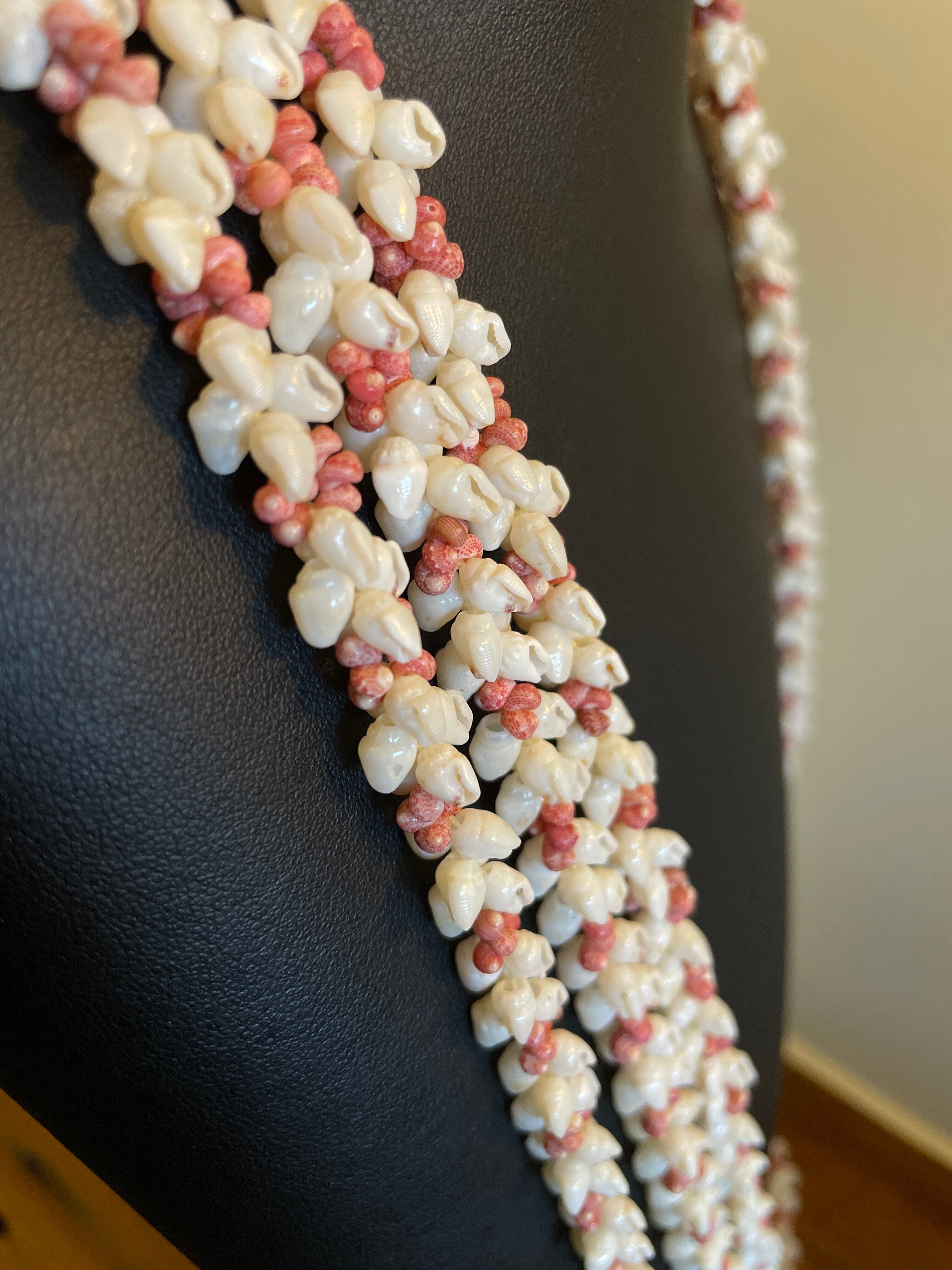 このシェルレイをつくるために、ニイハウ島のビーチに打ち上げられたシェルがニイハウ島の人々によって集められ、シェルの種類、また、カラーや、紋様ごとに分けられ、厳選された小さなシェルが一つ一つアーティストの手でレイに編み上げられていくという作業に費やされた長い時間にどれほどの時間がかかったのでしょうか想像できません。