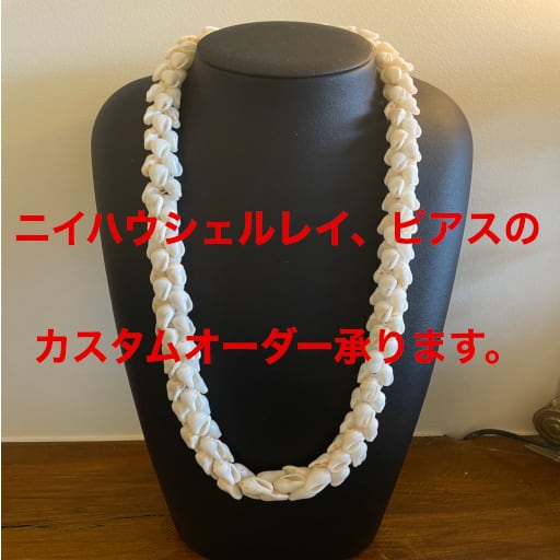 ご希望のスタイル(ピカケ、ヘリコニア、ロゼラニ、マウナロア等)、ご希望されるシェルの種類、カラー、長さ、何連にするか、などのご要望をお聴かせいただけましたら、ニイハウ島出身カウアイ島在住のレイアーティストに見積りを依頼し、お客様に価格、納期等をご回答させていただきます。