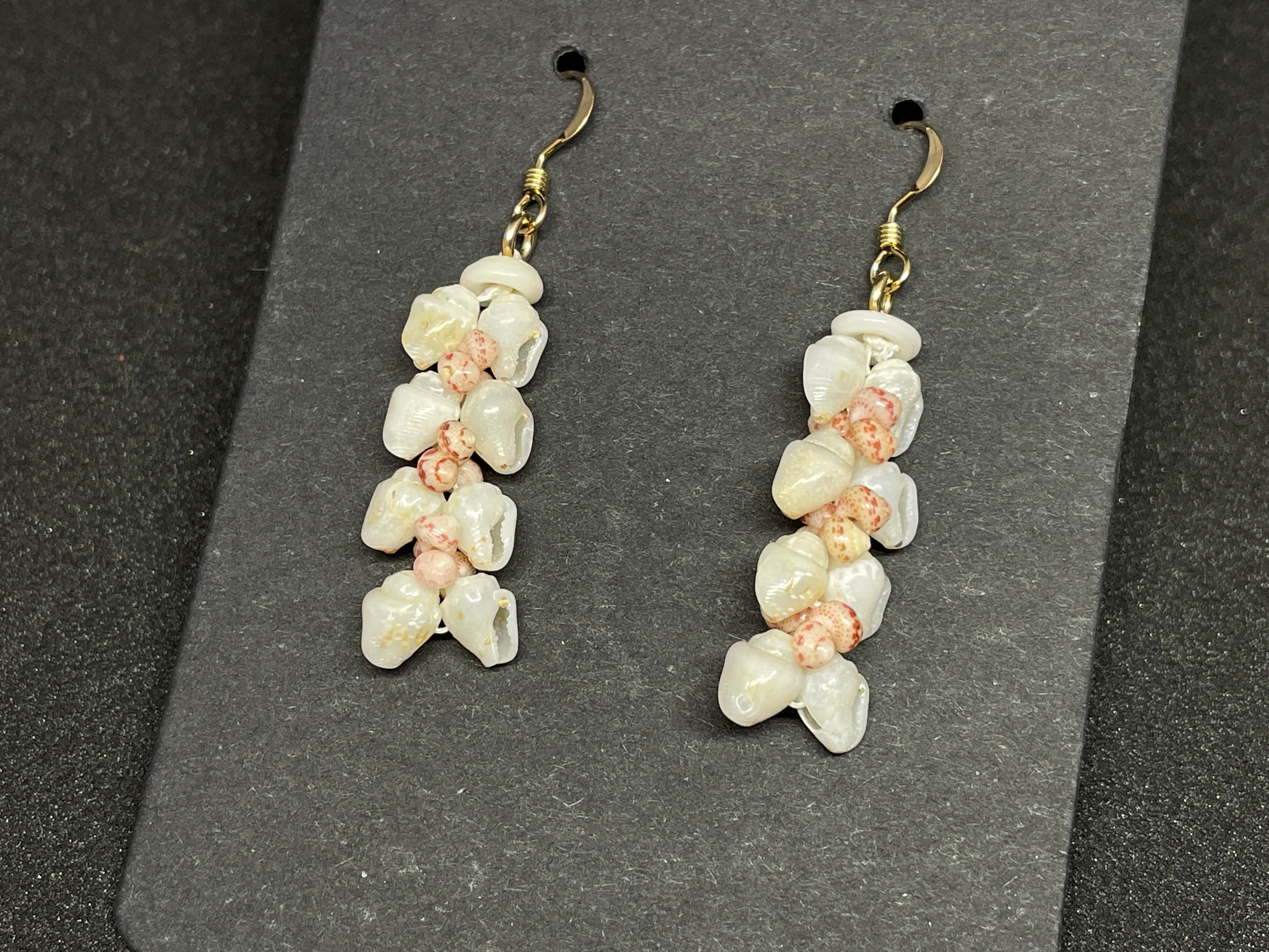 あまり見かけないホワイトカヘレラニシェルを利用したニイハウシェルピアス