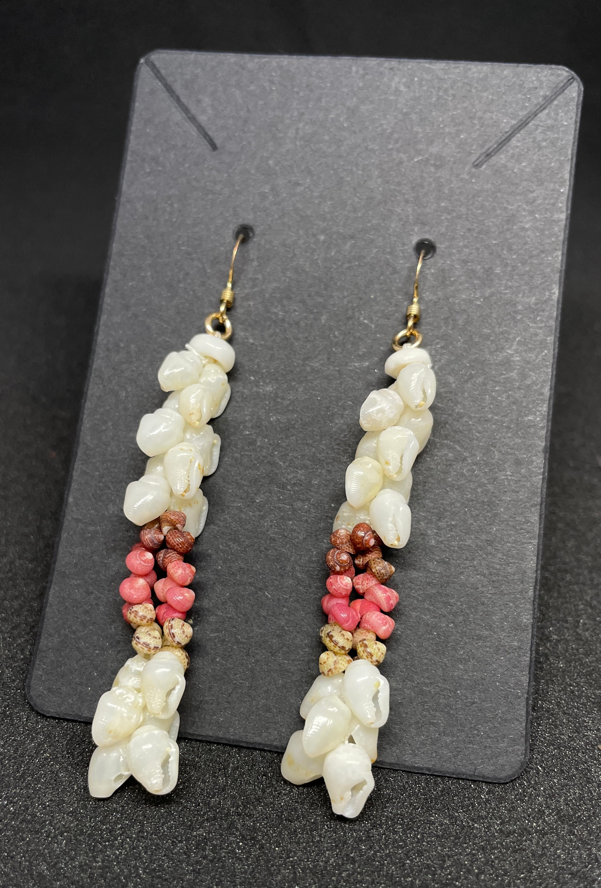 三色のカヘレラニシェルを使用したキポナスタイルのニイハウシェルピアスです。