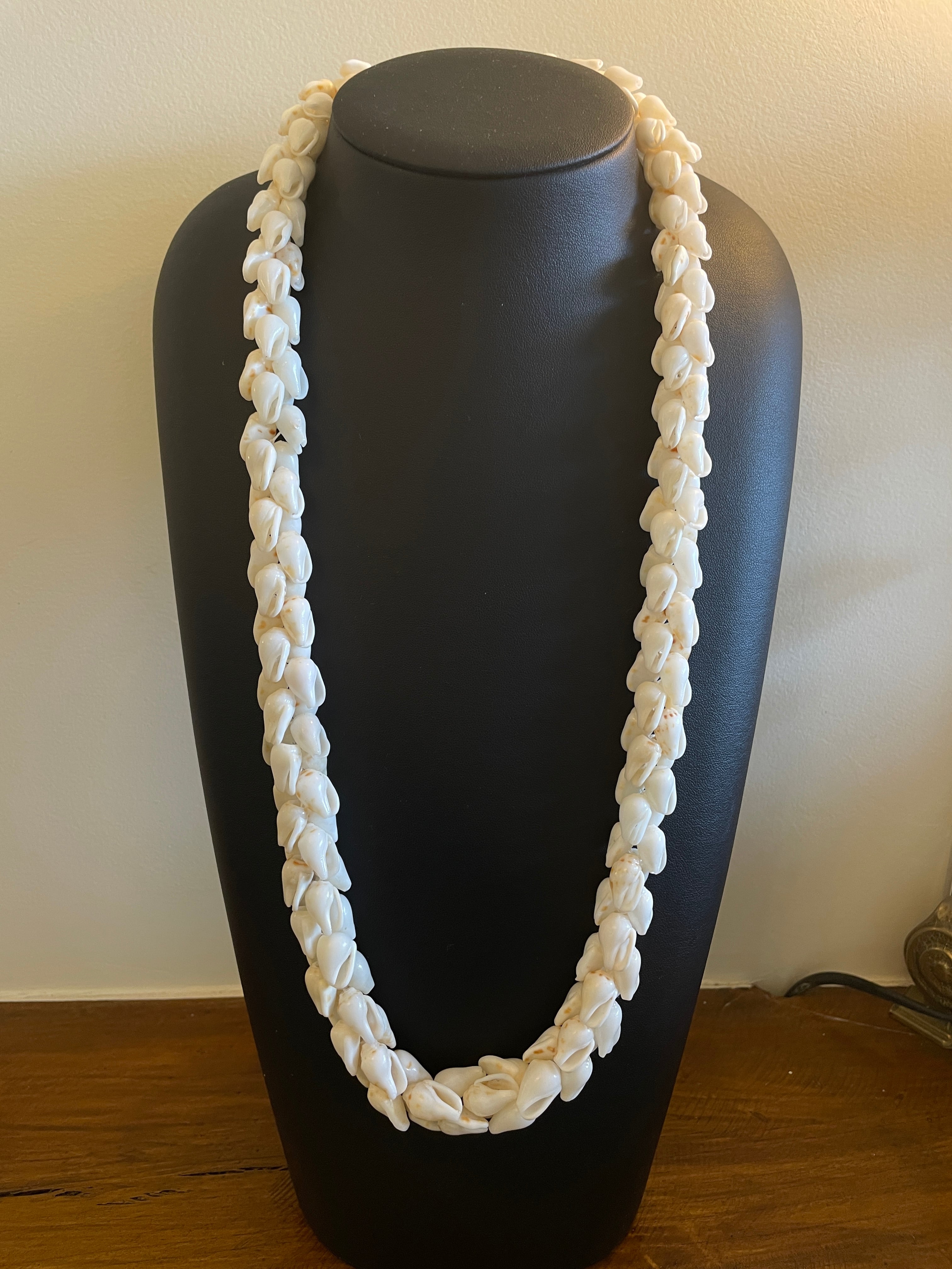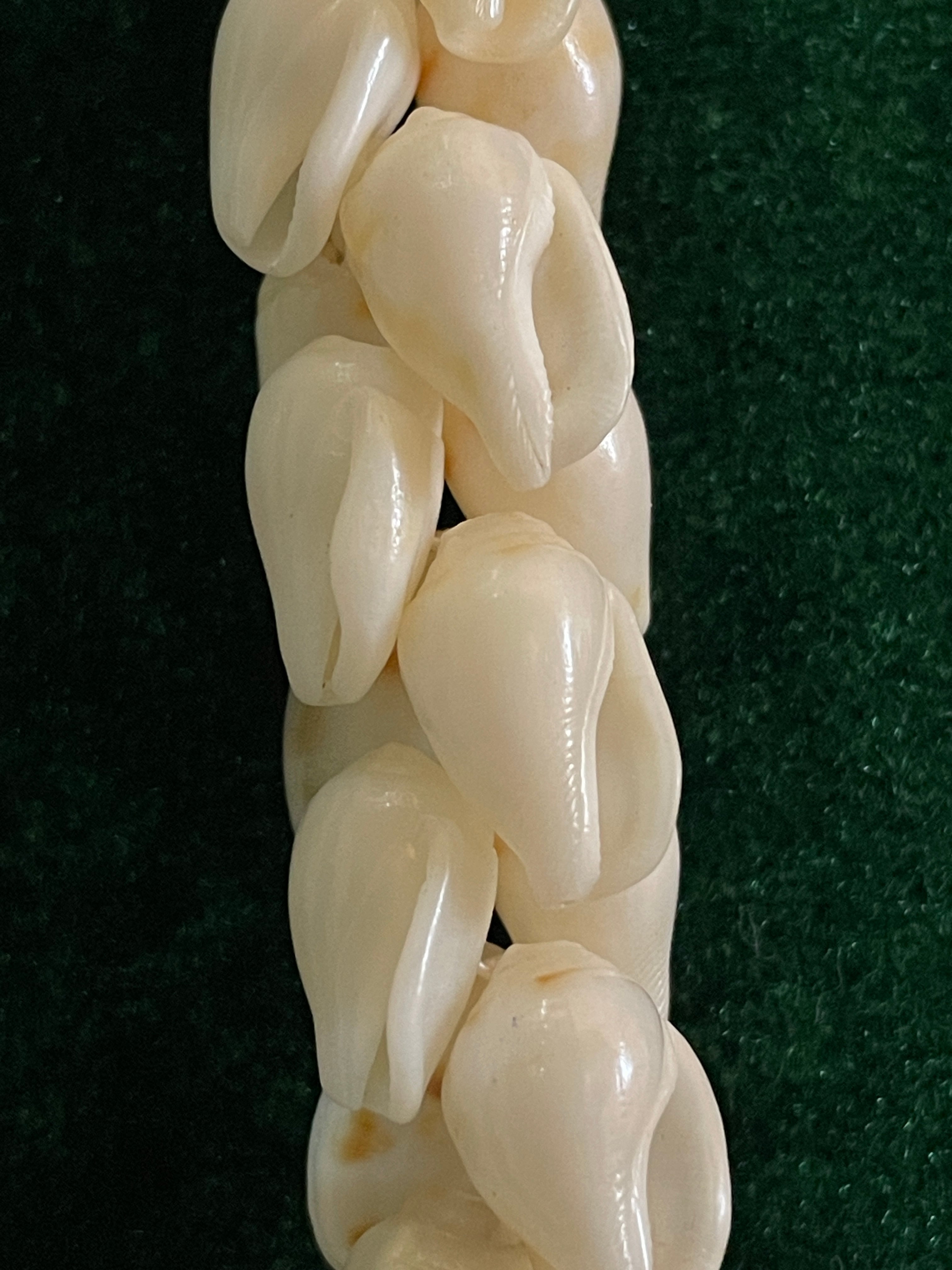 ニイハウシェルレイで、唯一 男性用向けに使用されるʻĀlīlea(アーリーレア)シェルを使用して編まれたニイハウシェルレイになります。