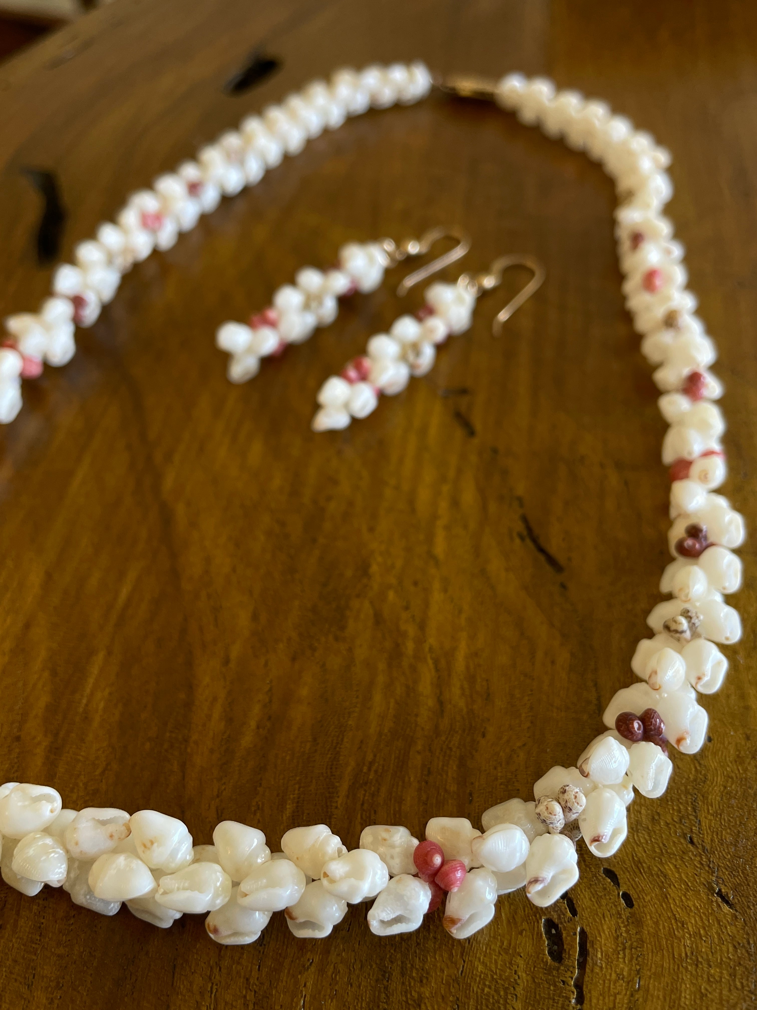 キポナスタイルのニイハウ シェルレイとピアスのセット