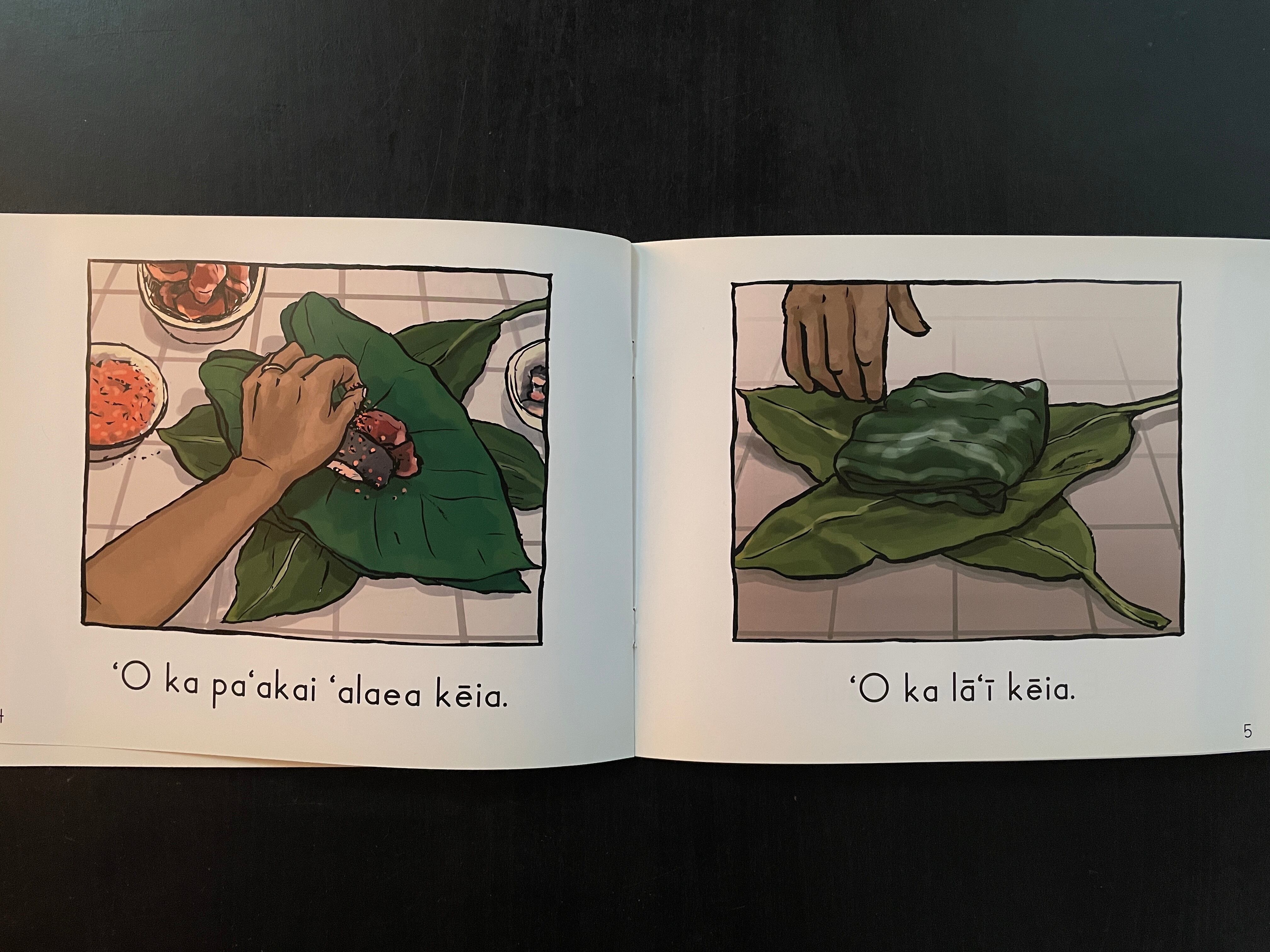 内容 : ハワイの伝統的な料理“ラウラウ”を下拵えする手順の絵本